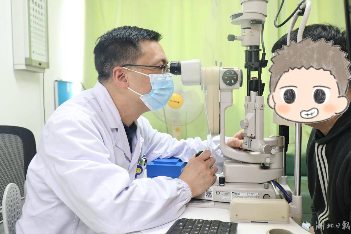 武汉市第一医院(武汉市中西医结合医院)眼科副主任医师鲁铭为患者做眼部检