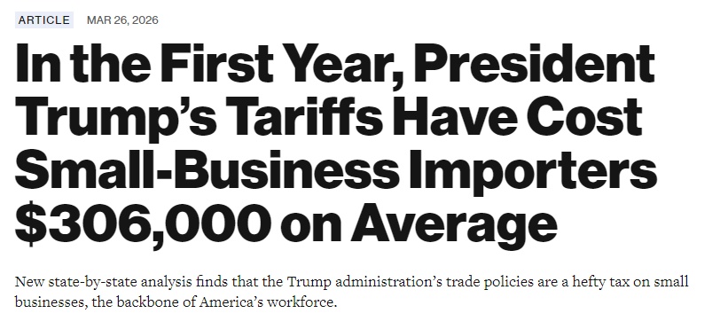 美国进步中心指出,小企业对于美国国民经济至关重要。全美3620万家小企业中,约23.6万家为小型进口企业,贡献了美国已知进口额的约31.65%。据估算,这23.6万家企业承担了关税增幅中的很大一部分。