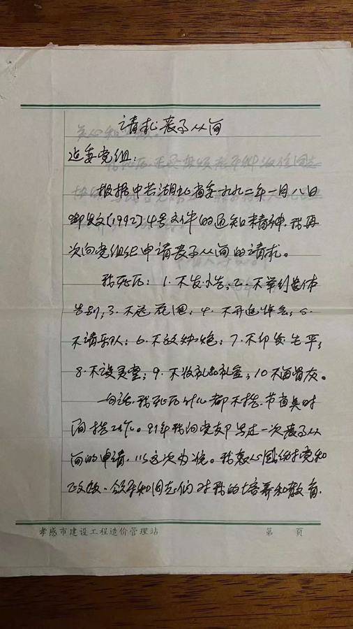 早在1991年,马发轩就主动向所在党支部提出丧事从简的申请。2008年10月,他更是郑重写下两份一模一样的遗嘱,一份留给儿女、一份递交党组织,誓言做到“十不”:不发讣告、不举行遗体告别、不送花圈……