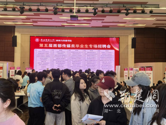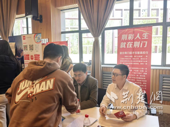 荆楚网(湖北日报网)讯(通讯员 吴军 韩博涛)4月1日下午,第五届西部传媒类毕业生专场招聘会在陕西师范大学(长安校区)火热举行。现场,“荆彩人生 就在荆门”招聘展位格外亮眼,荆门市教育局、东宝区驻点引才专员正热情为求职学子推荐适合的岗位,并耐心介绍荆门市人才引进培养使用一揽子支持政策。
