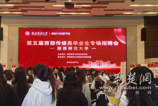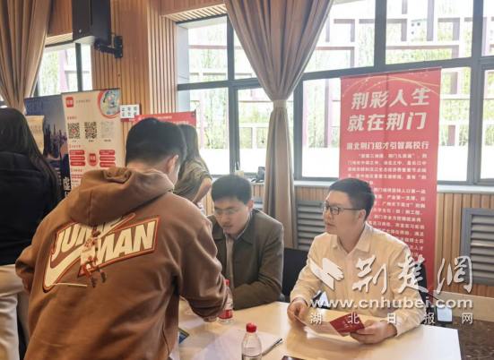 荆楚网(湖北日报网)讯(通讯员 吴军 韩博涛)4月1日下午,第五届西部传媒类毕业生专场招聘会在陕西师范大学(长安校区)火热举行。现场,“荆彩人生 就在荆门”招聘展位格外亮眼,荆门市教育局、东宝区驻点引才专员正热情为求职学子推荐适合的岗位,并耐心介绍荆门市人才引进培养使用一揽子支持政策。