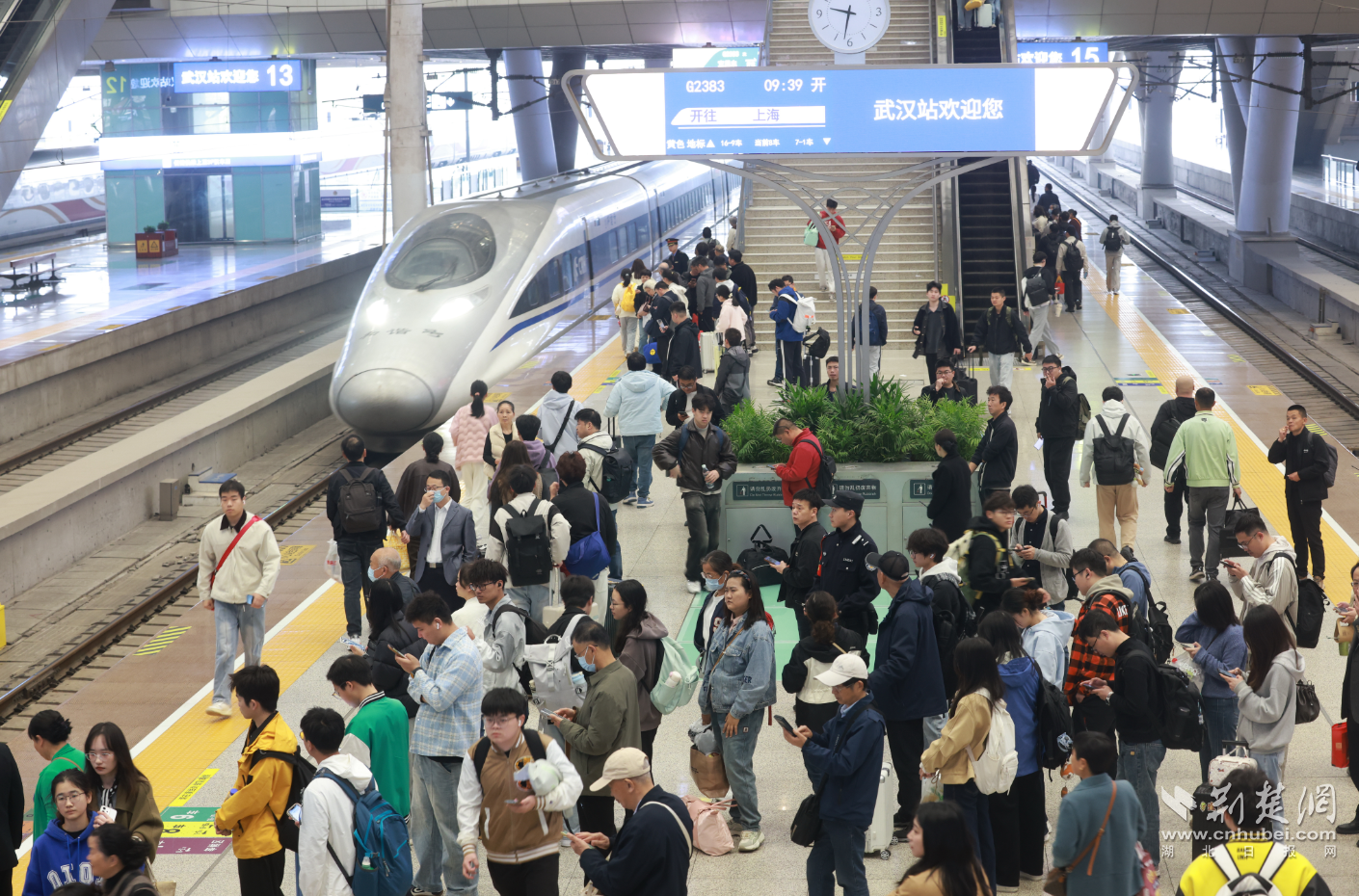 荆楚网(湖北日报网)讯(通讯员熊振迪 聂家欣)4月3日,清明假期铁路运输首日,武汉铁路迎来出行高峰。今年清明假期铁路运输期限为4月3日至7日,共5天,铁路部门实行高峰线运行图。武汉铁路警方同步启动高等级勤务模式,全力保障旅客平安有序出行。