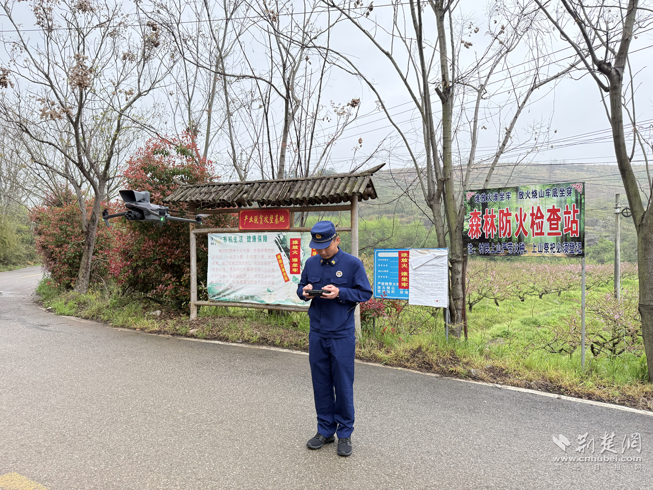 在咸宁市通城县,消防救援人员采取“空地联动”模式,无人机视角广、反应快,能第一时间发现违规用火行为,弥补地面巡查盲区;地面巡查组手持大喇叭、灭火器等装备,沿山道逐片巡护,循环播放防火提示。鄂州消防联合湖北航空技术学校,创新“消校共建”模式,组织专业飞手与消防员混编作业,无人机搭载高清摄像头和红外热成像,可及时发现高温异常区域。截至目前,已累计派出无人机80余架次,劝导制止违规用火30余起。