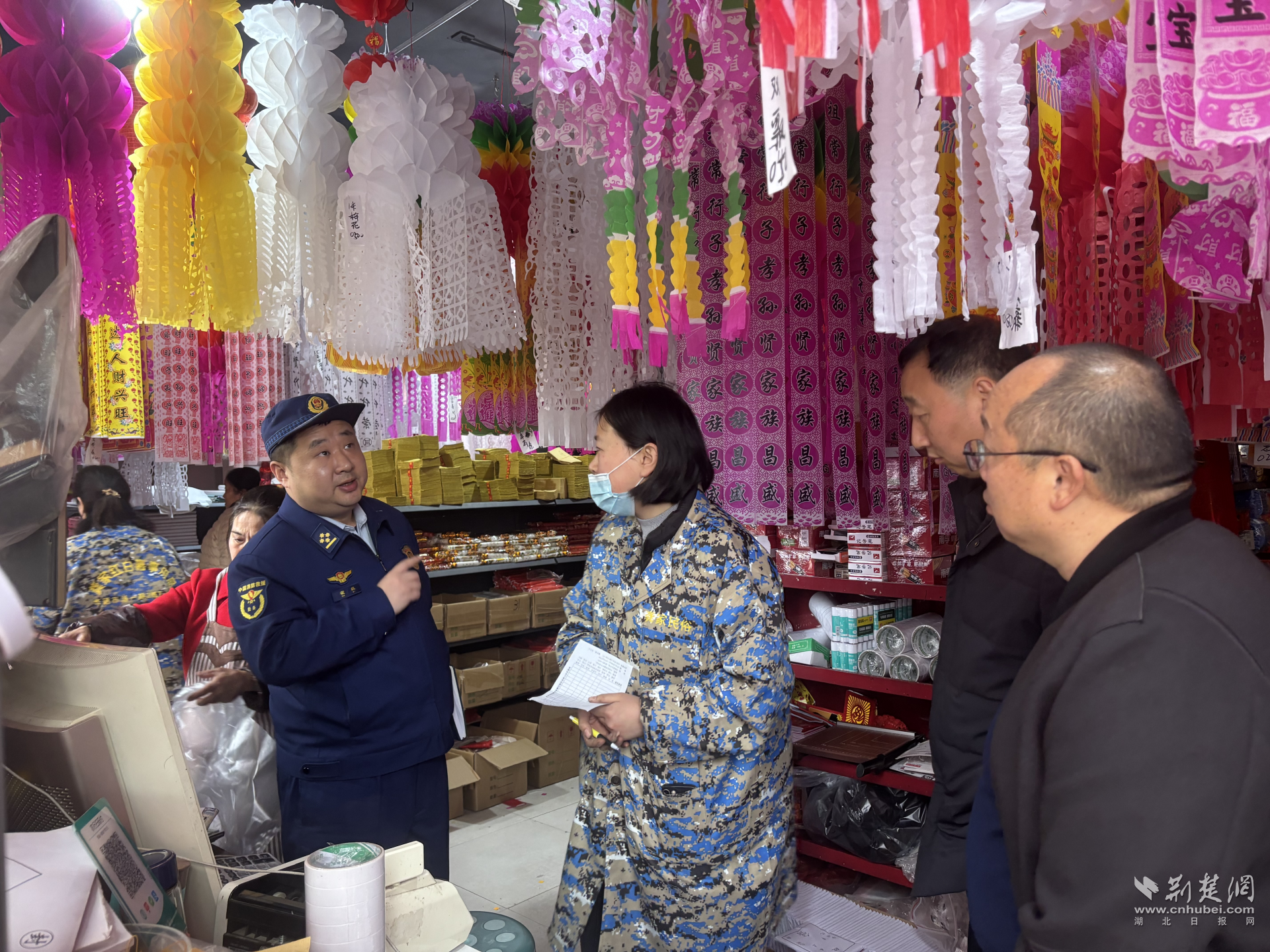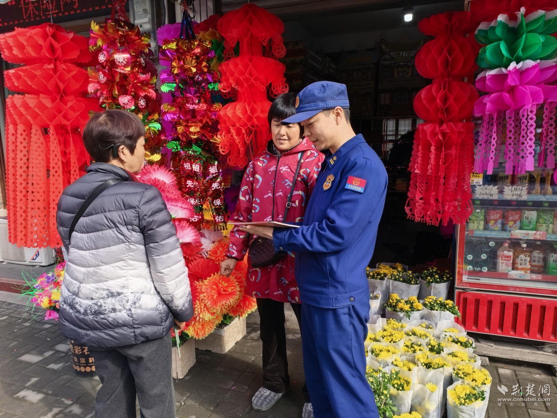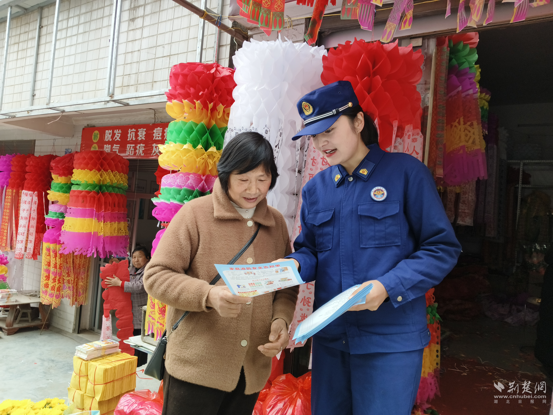 宜昌市消防救援支队宣传员上门宣传,向祭祀用品店店主普及消防安全常识。吴皓月 摄