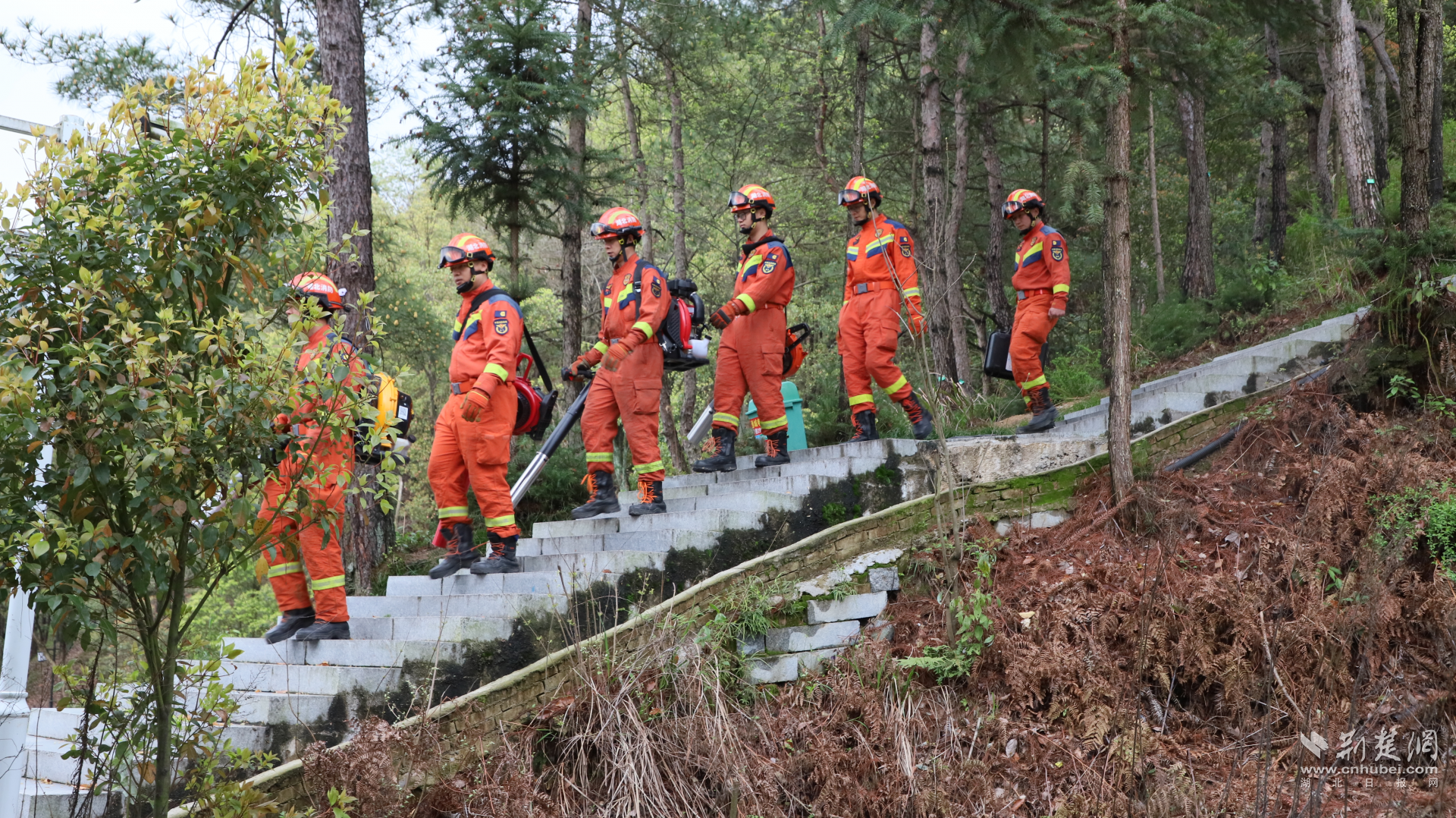 咸宁市消防救援支队消防员在锡山森林公园开展防火巡查。黎丹 摄