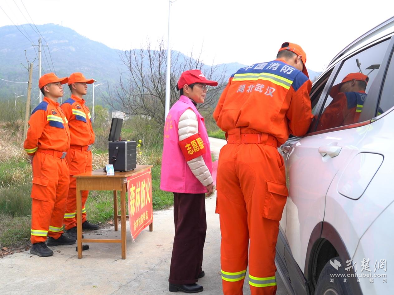 武汉市消防救援支队联合街道干部、护林员设立临时执勤点,对进入林区、墓区的人员和车辆逐一检查。汉消宣 摄
