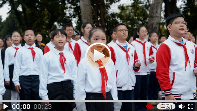随后举行的少先队员交接岗仪式上,佩戴红领巾的少先队员们神情庄重,完成了一场象征着责任与传承的交接。他们用《我们是共产主义接班人》的嘹亮歌声,表达了继承革命先辈光荣传统的坚定决心。