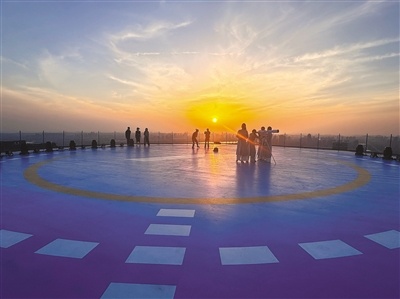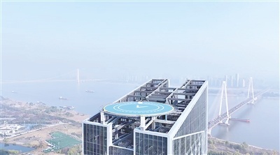 4月1日,武汉迎来首个可起降吨级eVTOL(电动垂直起降飞行器)的摩天大楼。“汉上观”项目是左岸大道上最高的写字楼,地处汉阳区与武汉经济技术开发区共建区,高度超200米。登顶“汉上观”,一片直径24米、面积452平方米的吨级eVTOL停机坪,为武汉天际线增添未来感。吨级eVTOL云端停机坪不仅可降落全尺寸民用垂直起降飞行器,还可变身观星台。楚天都市报极目新闻记者朱惠 通讯员李沁馨摄