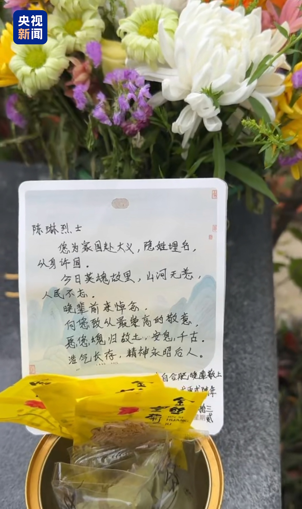 将陈琳烈士骨灰送回故乡的,是安徽六安90后小伙远山。他告诉总台记者,自去年看完总台电视剧《沉默的荣耀》后,他开始关注隐蔽战线英雄们的故事,并联系到了陈琳烈士的亲属,一场送英烈回家的接力由此开始。