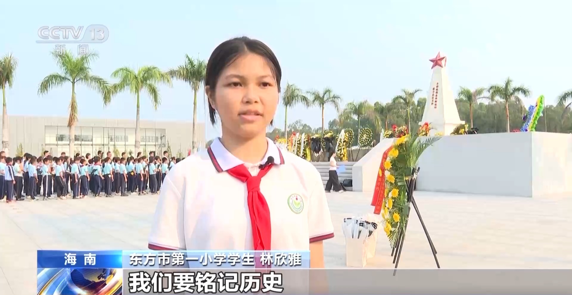 东方市第一小学学生 林欣雅:作为新时代的小学生,我们要铭记历史,传承革命先烈精神,做一个有担当、爱祖国的好少年。