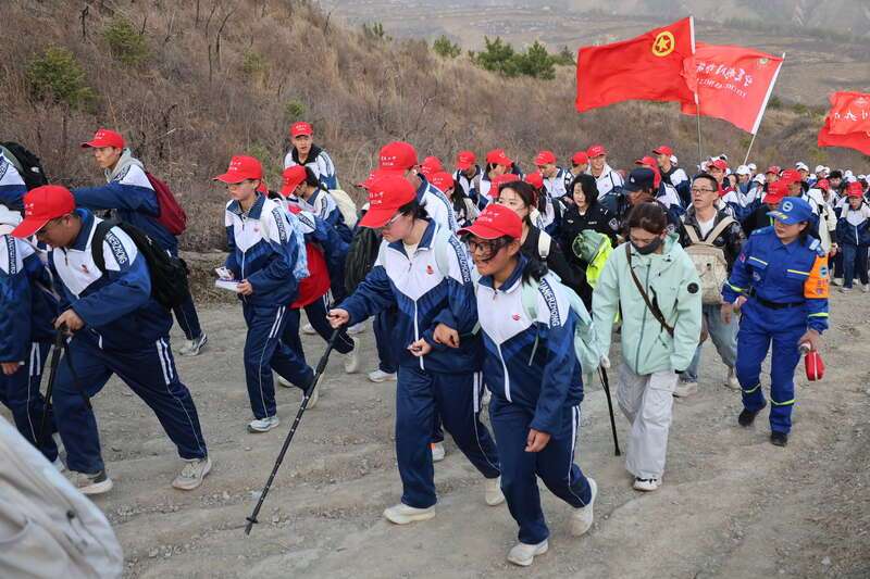 一路上,学生们高举国旗、党旗、团旗、队旗、校旗、班旗,高唱《没有共产党就没有新中国》等歌曲,秩序井然走出原州区。行至青石峡水库一带的砂石路,路窄、坡陡,他们相互鼓励、咬牙坚持,结伴搀扶而行,手拉手翻山越岭、肩并肩紧跟队伍前行,裤腿上都是扬起的沙土,经受着体力和意志力的双重挑战。体力好的学生,抢着帮同学背书包、拿重物。