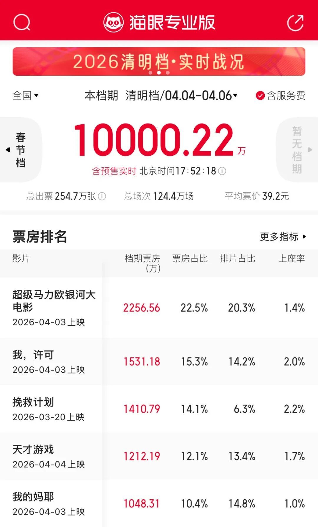 2026清明档电影票房(含预售)