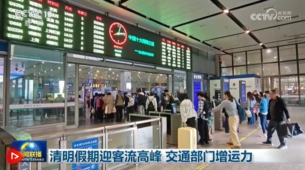 央视网消息(新闻联播):4月4日是清明假期第一天,出行客流形成高峰。交通运输部预计,4月4日全社会跨区域人员流动量约2.96亿人次。
