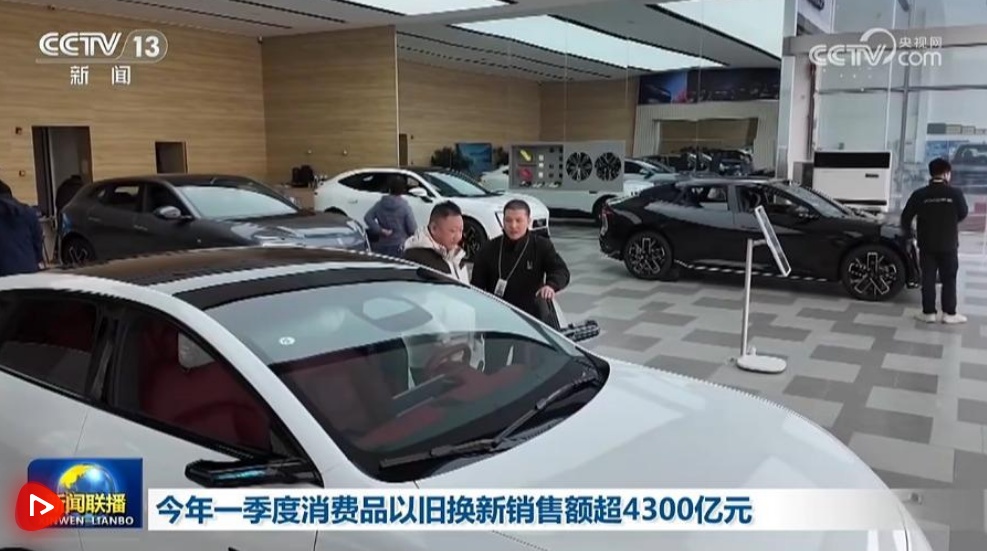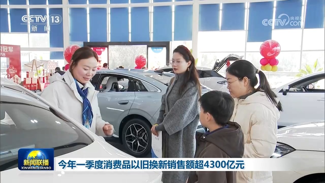 央视网消息(新闻联播):记者从商务部了解到,今年一季度,消费品以旧换新政策取得积极成效,带动相关商品销售额超4331.7亿元,惠及6093.3万人次。