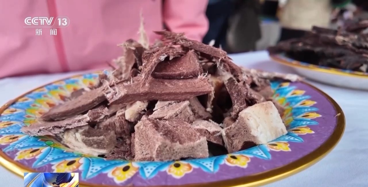 这碗酸奶是尼屋乡当地的群众自己做的,尼屋乡比较特别的吃法在于它里面添加的“小料”。不同于以往的酸奶加入的是白糖、人参果等等这一类的“小料”,尼屋乡酸奶里面是可以加入辣椒和香菜的。桌上摆放了辣椒,还有包括这一碗加入了香菜的酸奶。如果大家尝一口的话会发现,虽然这个听起来比较“黑暗料理”,但是在一碗酸奶里面,能够品尝到咸、香、辣味,还混着一点醇厚的奶香味,层次是非常丰富的。