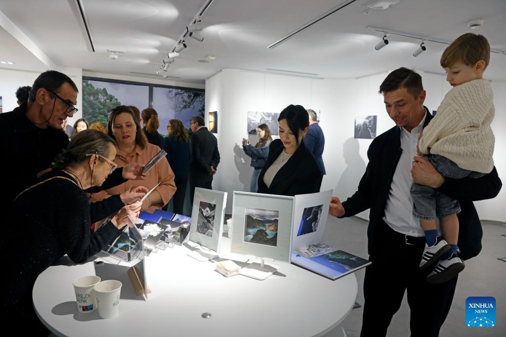 People visit a photo exhibition themed on southwest China's Xizang Autonomous Region in Bucharest, Romania, April 2, 2026. (Photo by Cristian Cristel/Xinhua)