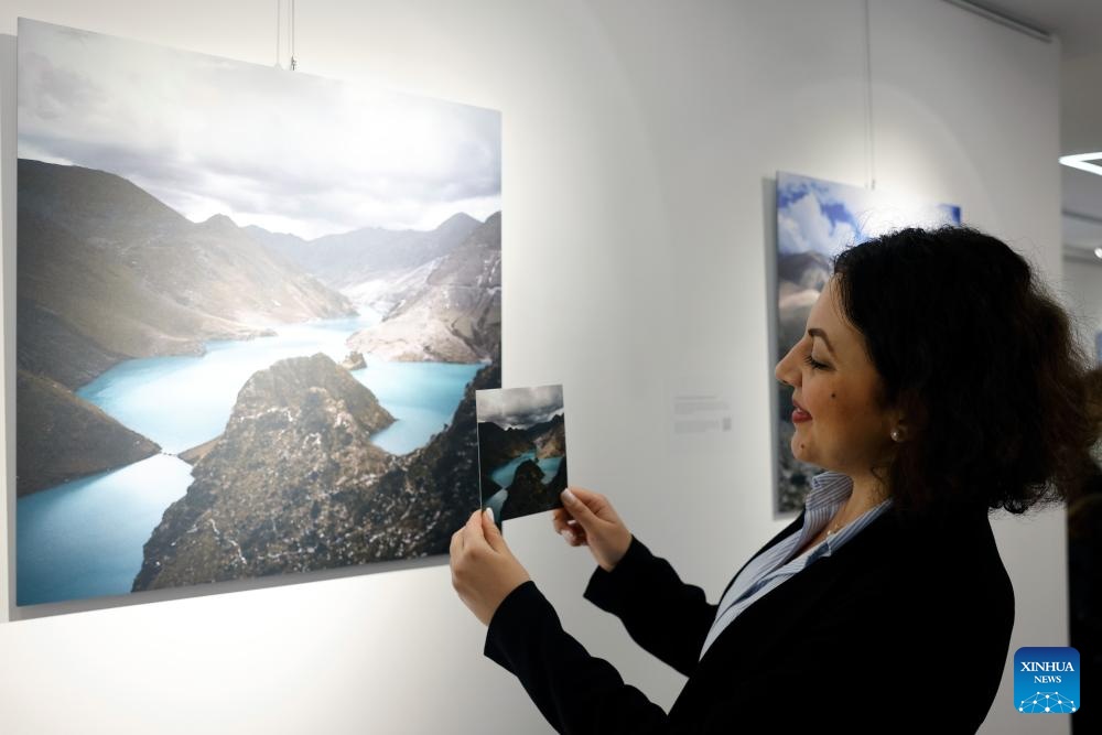 A woman visits a photo exhibition themed on southwest China's Xizang Autonomous Region in Bucharest, Romania, April 2, 2026. (Photo by Cristian Cristel/Xinhua)