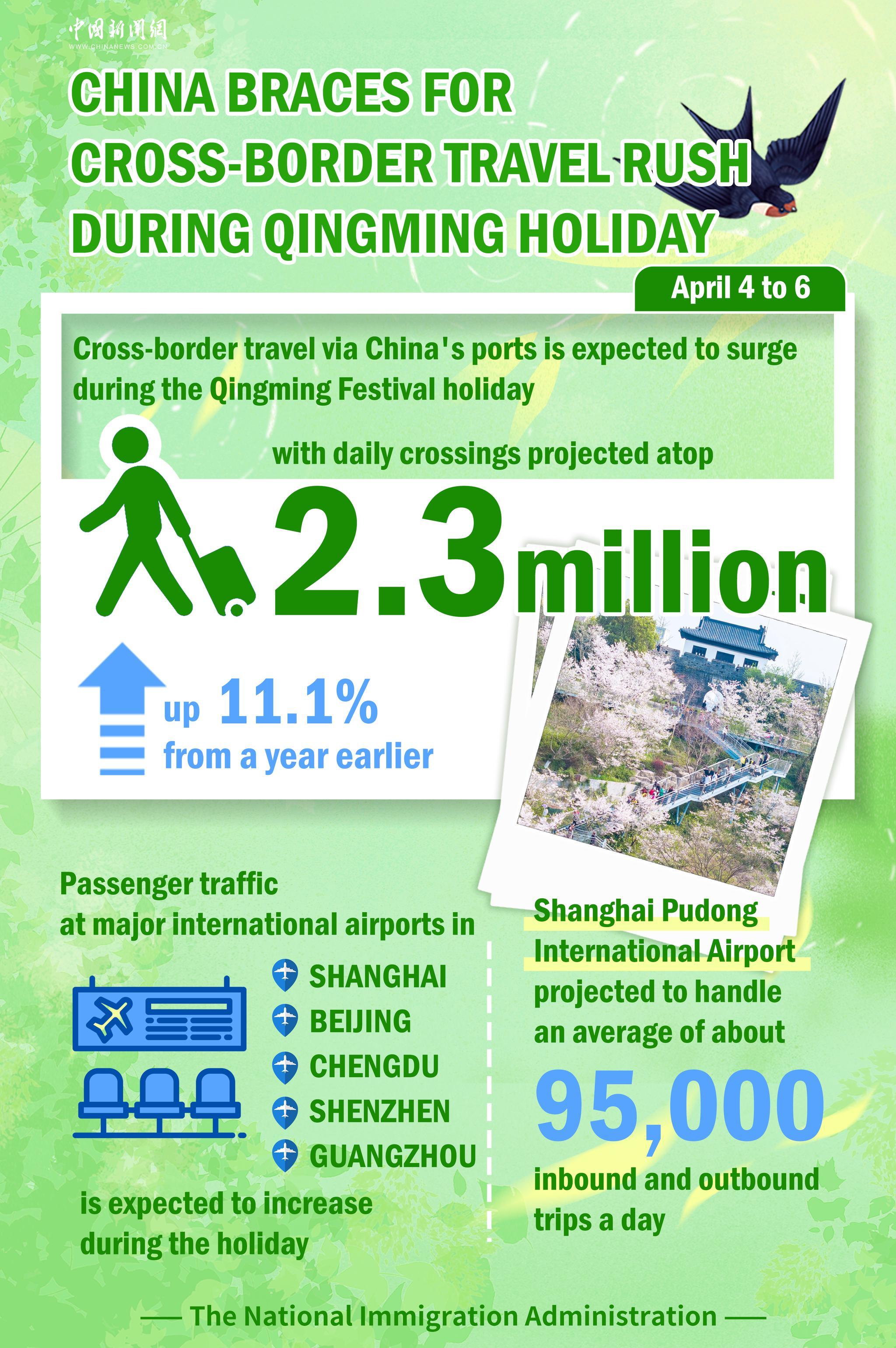 Cross-border travel via China's ports is also expected to surge during the holiday, with daily crossings projected atop 2.3 million, up 11.1% from a year earlier, according the National Immigration Administration (NIA).