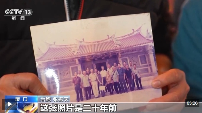 台胞 张振天:这张照片是二十年前我的父母带我们来祭祖,二十年前第一次来拜访我们的祖先。二十年以后,今天是我第二次来这里。我们现在都住在台湾了,为了来祭祖,特地从台湾飞到金门再坐船到这里。