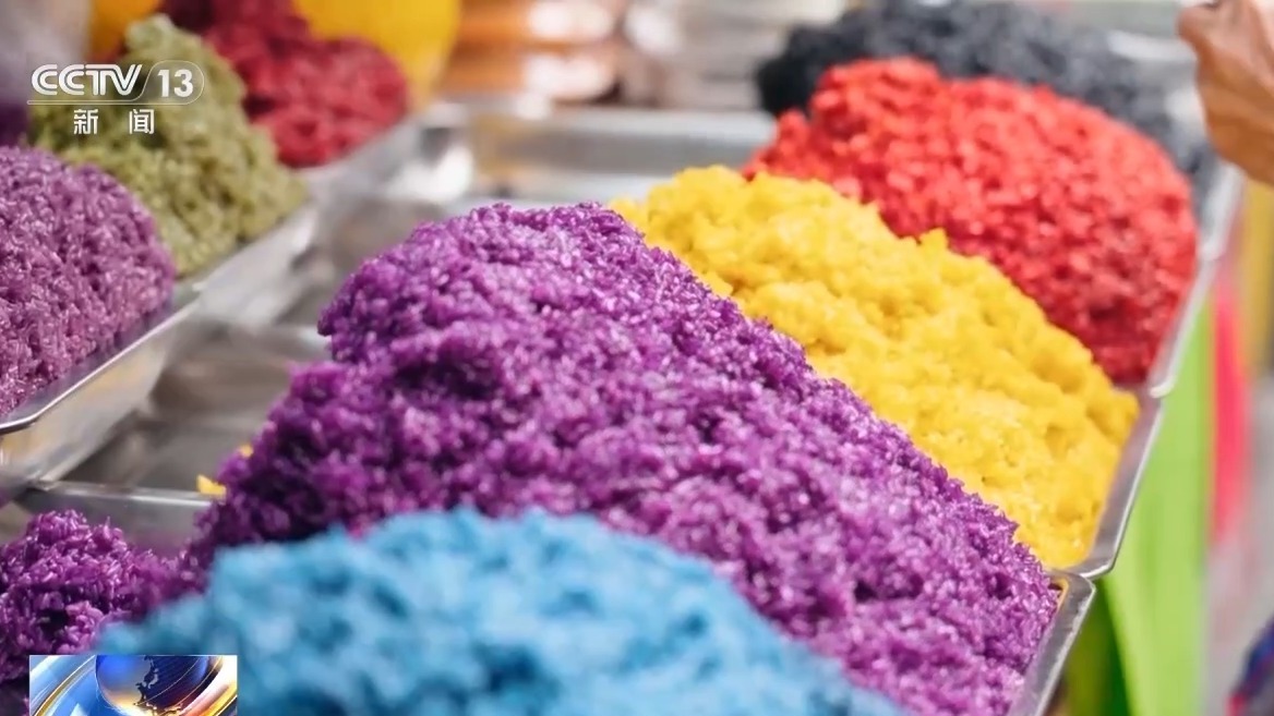 多种颜色搭配在一起,不仅仅是视觉上的震撼,更藏着满满的心意和祝福,五色糯米饭也是当地逢年过节的必备美食。