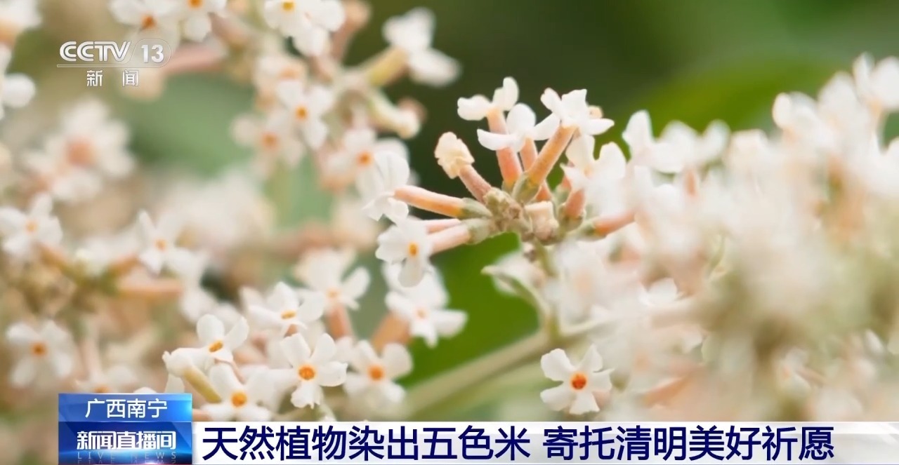 色泽鲜亮的五色糯米饭是清明时节广西人家中必不可少的一道美食。五色糯米饭的颜色从何而来?答案就藏在山野之间。除了糯米原本的白色,其余颜色全部来自天然植物,而清明节前后正好是染色植物生长最好的时节。