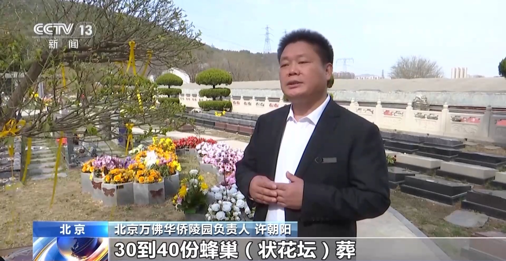 北京万佛华侨陵园负责人 许朝阳:3平方米的土地能够设置30到40份蜂巢状花坛葬,我们在设计的时候引入了蜂归巢、叶落归根理念,底下安排了可降解的材质,上面栽上鲜花,逝者一年四季都能够与鲜花为伴。