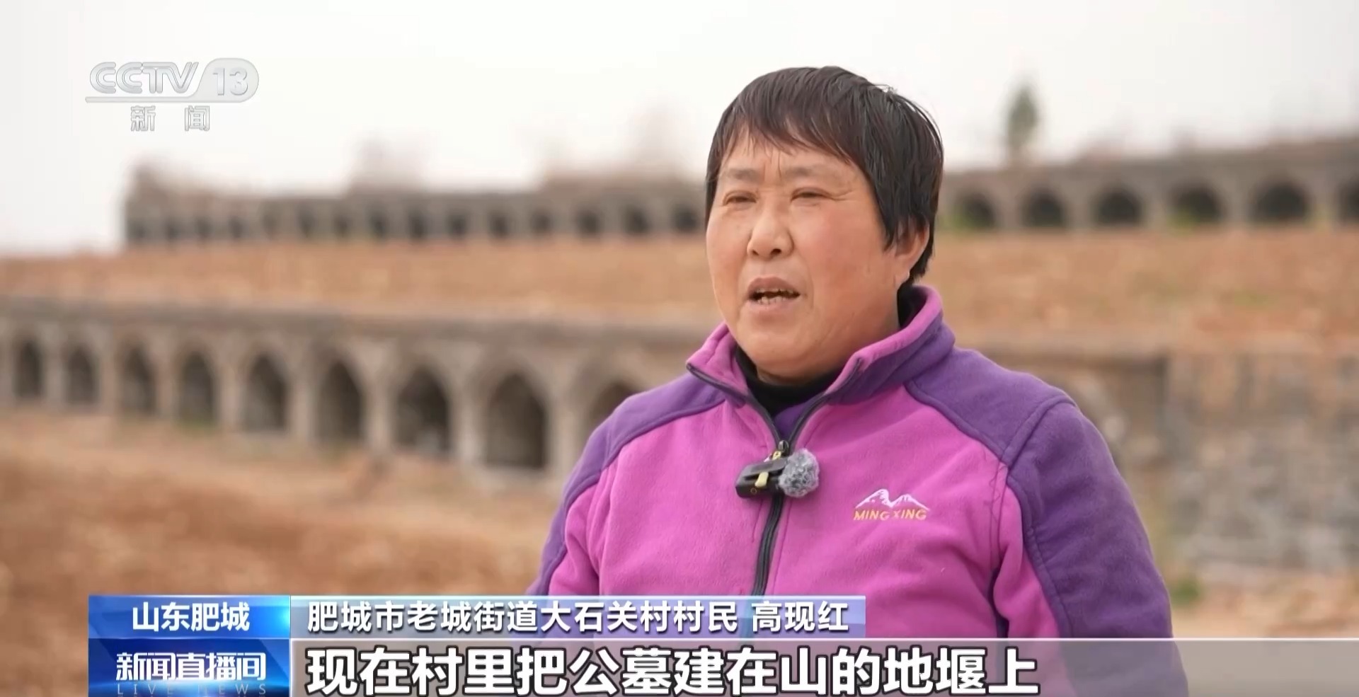 肥城市老城街道大石关村村民 高现红:村里把墓地建在山的地堰上,不占一分耕地,老人的身后事有着落,地里的庄稼也不耽误种。