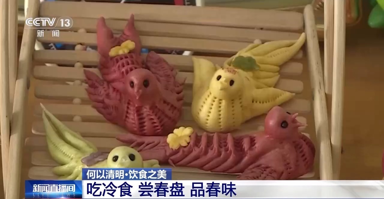 用面粉和枣泥做成燕子形状面点,用柳条串起挂在门上——既是食物,又是装饰。