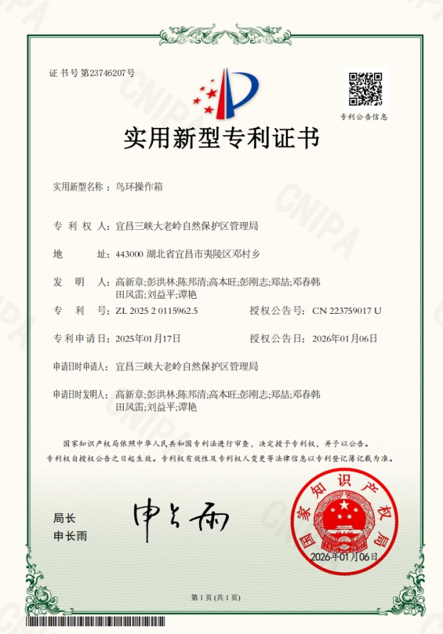 科研装备同样迎来突破。今年,保护区自主发明的“鸟环操作箱”获国家知识产权局实用新型专利授权,这款高度集成、轻便易携的操作箱大幅提升了环志效率与合格率。大老岭已累计环志鸟类超6000只,为揭示鸟类的迁徙路线、停歇规律记录下关键数据。保护区还参与制定并发布了省级地方标准《鸟类环志监测技术规程》,为同类型自然保护区提供了可借鉴的实践范例。