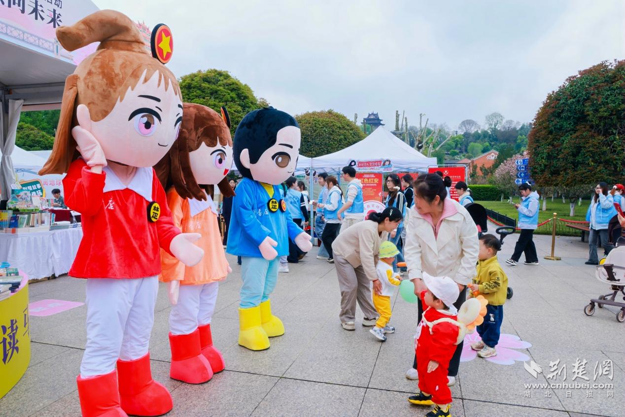 现场人气满满,湖北新华原创IP楚小新、楚小华、倍小阅,吸引大小朋友争相打卡合影。红色剪纸、非遗面塑、樱花拓印、VR 科普体验等互动项目轮番开展,孩子们在动手实践与趣味体验中感受红色文化、传统文化与现代科技的魅力。