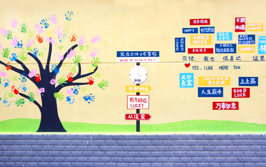 在小南门社区石油小区,曾经“灰秃秃”的围墙早已焕发新生。憨态可掬的卡通动物、色彩明快的童话场景,让原本沉寂的角落瞬间鲜活起来,也成了孩子们的“快乐天地”。