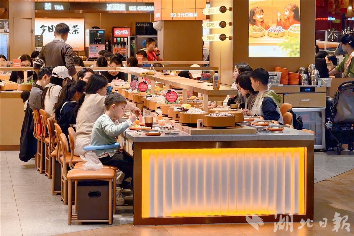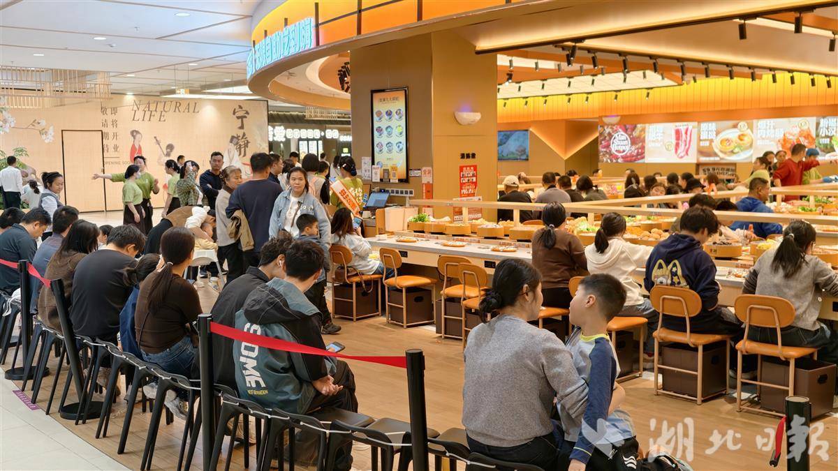 清明假期,武汉商圈迎来消费热潮。4月6日,江夏区永旺梦乐城人气火爆。记者看到,各餐饮店外排起长队,店内座无虚席,还有餐饮商家推出“排队2分钟减1元”活动提升顾客就餐体验。购物、聚餐需求集中释放,彰显出假日消费的强劲动能。(湖北日报全媒记者 陈少哲 摄)