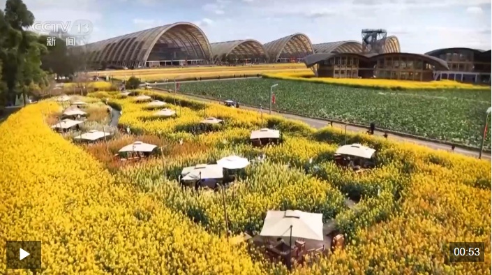 在岷江支流,油菜花海与秧田相间,成为踏青好去处。花田中搭建起多种消费场景,激发消费活力,促进城乡融合,让种植户和周边社区居民受益。