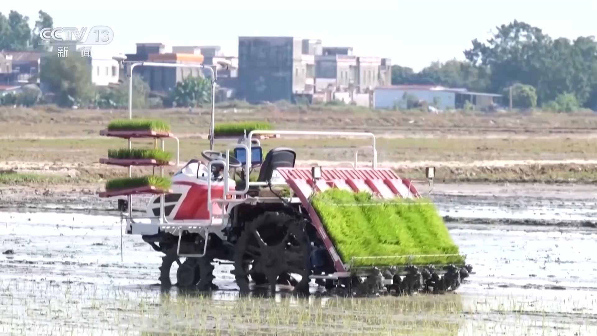 在华南地区,水田如镜,新秧成行。高速插秧机在水田间稳步推进。农业机械化正逐步向全产业链的自动化、智能化扩展,培育农业新质生产力。