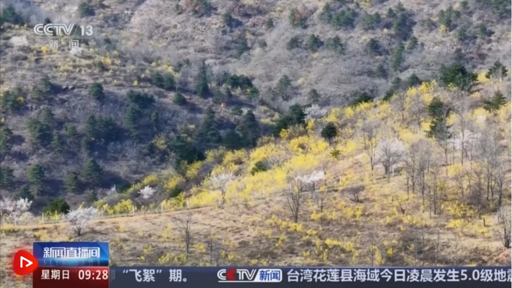 眼下,山西省安泽县的150万亩野生连翘迎春绽放。金黄色的花海铺展于群山沟壑之间,绘就出一幅绿水青山蝶变金山银山的生态富民新画卷。