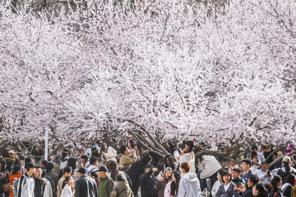 ■在山东日照五莲县大旺村,300余亩樱桃花肆意绽放。当地以花为媒,举办赏花活动,融合歌舞表演、非遗市集、农特产品销售等多元业态,打造一站式春日文旅场景。