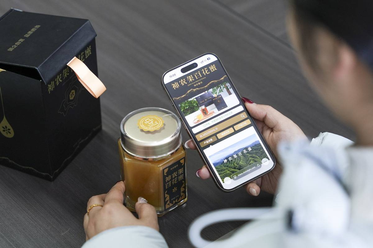 “我们用数字技术为神农架百花蜜赋予了独一无二的数字身份证,提高了产品辨识度,帮助消费者快速核验真伪。”为神农架百花蜜品牌建设提供技术支撑的瑞米智慧农业科技有限公司总经理张莹介绍。