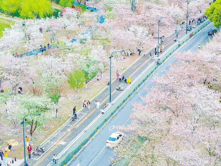 “落樱缓扫”让游客细品“0.5倍速”的春天