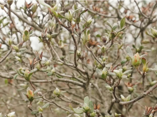 镜头拉近,枝头缀满翡翠般的花苞,像千万只风铃悬在峭壁与山径之间。偶尔有几朵急性子的“探春者”悄悄裂开一线浅粉,在山风中轻轻颤动——那是春天发出的第一封邀请函。