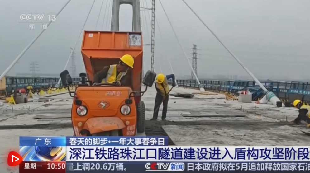 珠江口隧道是深江铁路的关键控制性工程,位于广东东莞与广州之间的珠江入海口,全长13.69公里,横穿珠江口多个水道。深江铁路东起深圳西丽,西接江门,正线全长116公里,是全国“八纵八横”高速铁路网沿海通道的重要组成部分,建成后将大幅缩短粤西、西南地区通达广州、深圳的时空距离,对促进“轨道上的大湾区”建设和沿线地区经济社会发展具有重要意义。这个清明假期,包括珠江口隧道工程在内的7000多名深江铁路建设者坚持在岗,推动工程建设扎实向前。