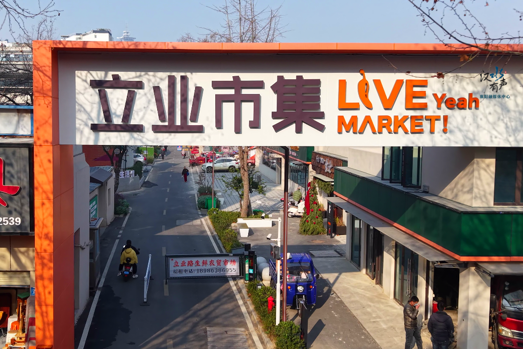 立业市集入口处,粉色花束拼成的“襄阳”二字与质朴红砖墙相映成趣,成为市民热门打卡点;与此同时,老厂房高耸的梁柱、裸露的砖墙被完整保留,静静诉说着上世纪八十年代的工业往事。