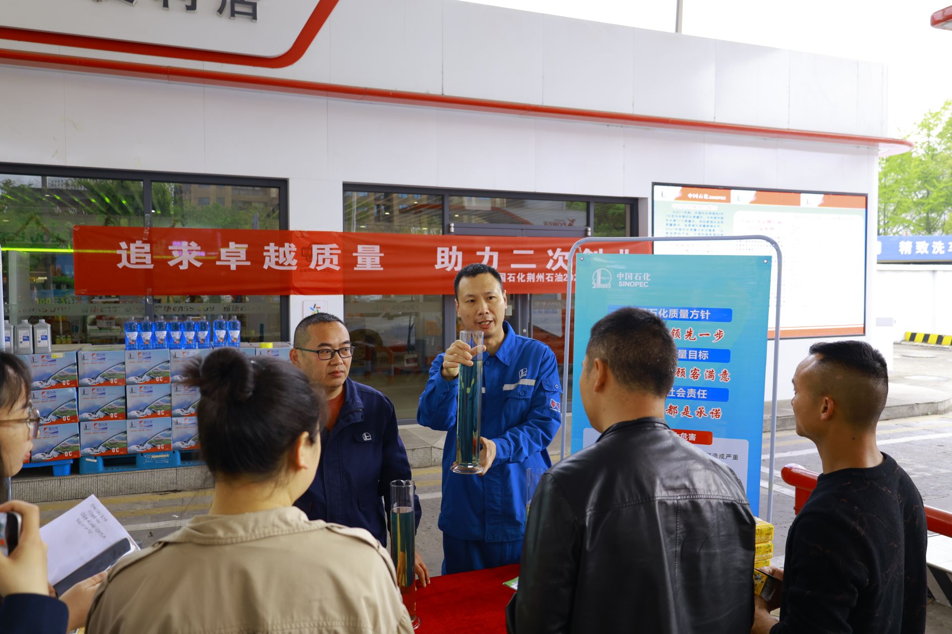 当天,中石化荆州石油在沙市区中心加能站以“追求卓越质量 助力二次创业”为主题开展质量日宣传活动,以沉浸式科普、面对面答疑的实际行动,诠释央企对质量的极致追求与民生责任的坚定担当。