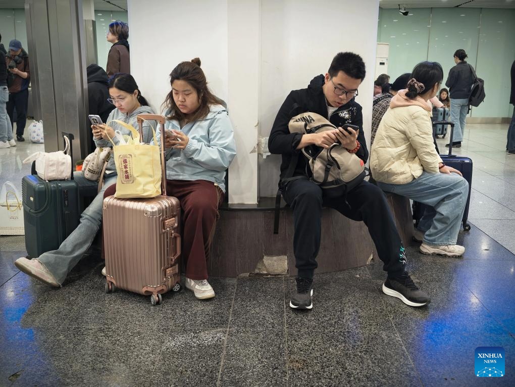 Passengers are pictured at the waiting hall of Guangzhou South Railway Station in Guangzhou City, south China's Guangdong Province, on April 6, 2026. An estimated 845.38 million passenger trips were made across China during the three-day Qingming Festival holiday, up 6 percent year on year, transportation authorities said on Monday.