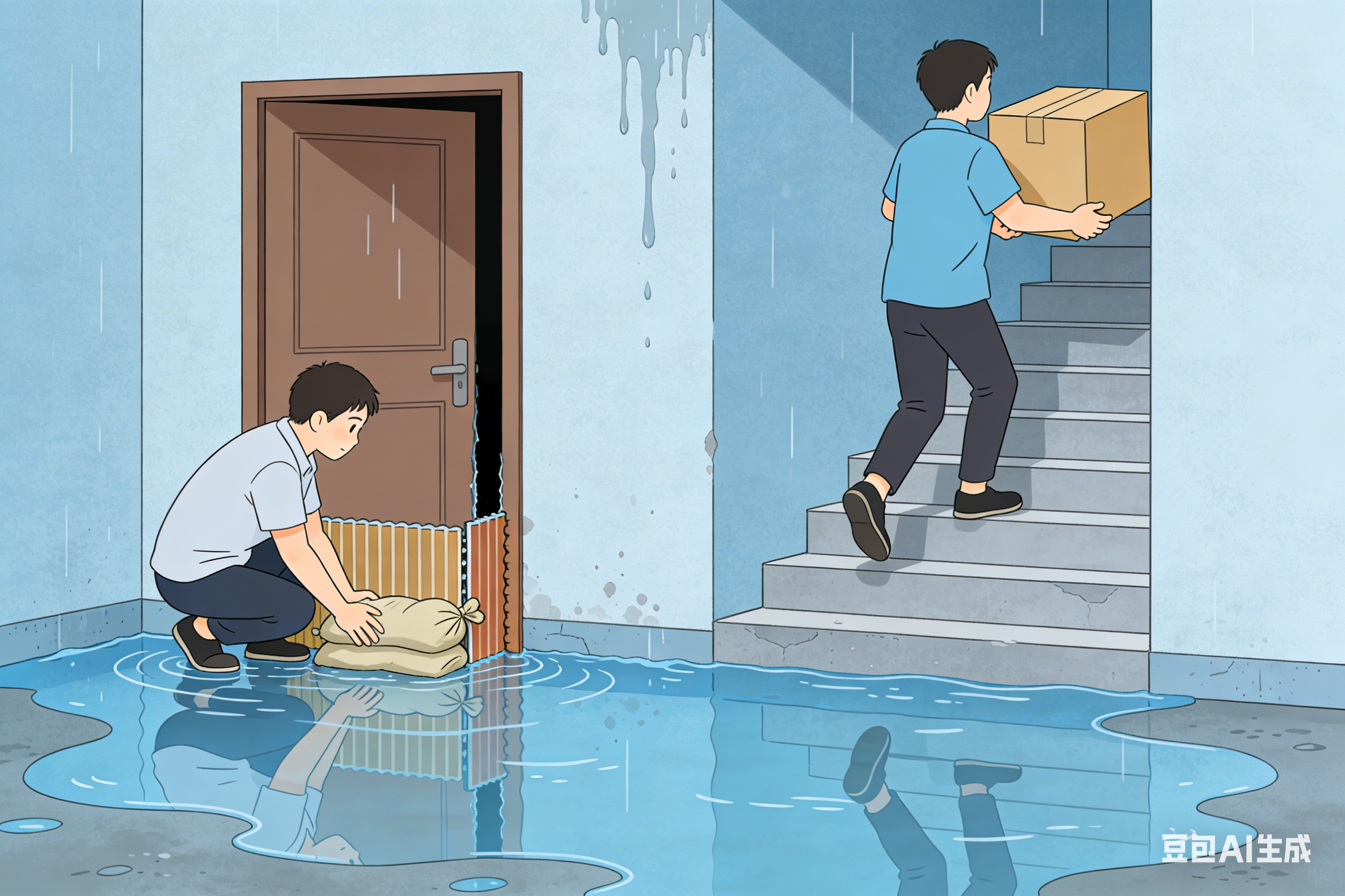 强降雨来临前,大家可抢先一步,做好防备。居家时可检查并疏通屋顶、阳台、院内的排水口,将一楼易淹物品搬至高处,备好手电筒、充电宝、哨子、饮用水、常用药。一楼或低洼住户,一旦发现积水倒灌,立即切断电源,防止触电。用沙袋、挡水板堵住门口,迅速转移到二楼或更高处。高楼层住户要关紧门窗,防止雨水飘入损坏电器。