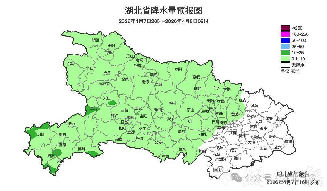 湖北日报讯(记者曾莉)4月7日白天,鄂西南还有分散性小雨出没,其他地区多云到阴天,西部17至23℃、东部24至27℃。但平静只是暂时的——8日至9日湖北将迎来今年以来最强降雨过程,将伴有8至11级雷暴大风、冰雹等强对流天气。