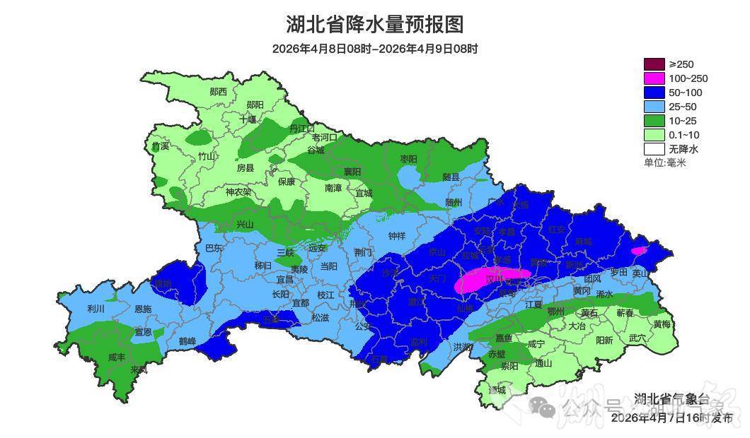 湖北省气象台首席预报员黄小彦介绍,预计从7日晚开始,湖北中西部地区将率先转小雨,局部有中雨并伴有雷电。8日到9日白天,降雨范围扩大、强度明显升级。鄂西南、江汉平原和鄂东北将迎来大到暴雨,其中武汉、孝感、黄冈北部等局地可能达到大暴雨量级;鄂东南则为中到大雨、局地暴雨。降雨最强时段集中在8日傍晚到9日上午,届时将伴有小时雨强20至50毫米的短时强降水,以及8至11级雷暴大风、冰雹等强对流天气。好消息是,9日晚上降水将短暂停歇,不过10日至11日省内大部地区仍有降水过程。