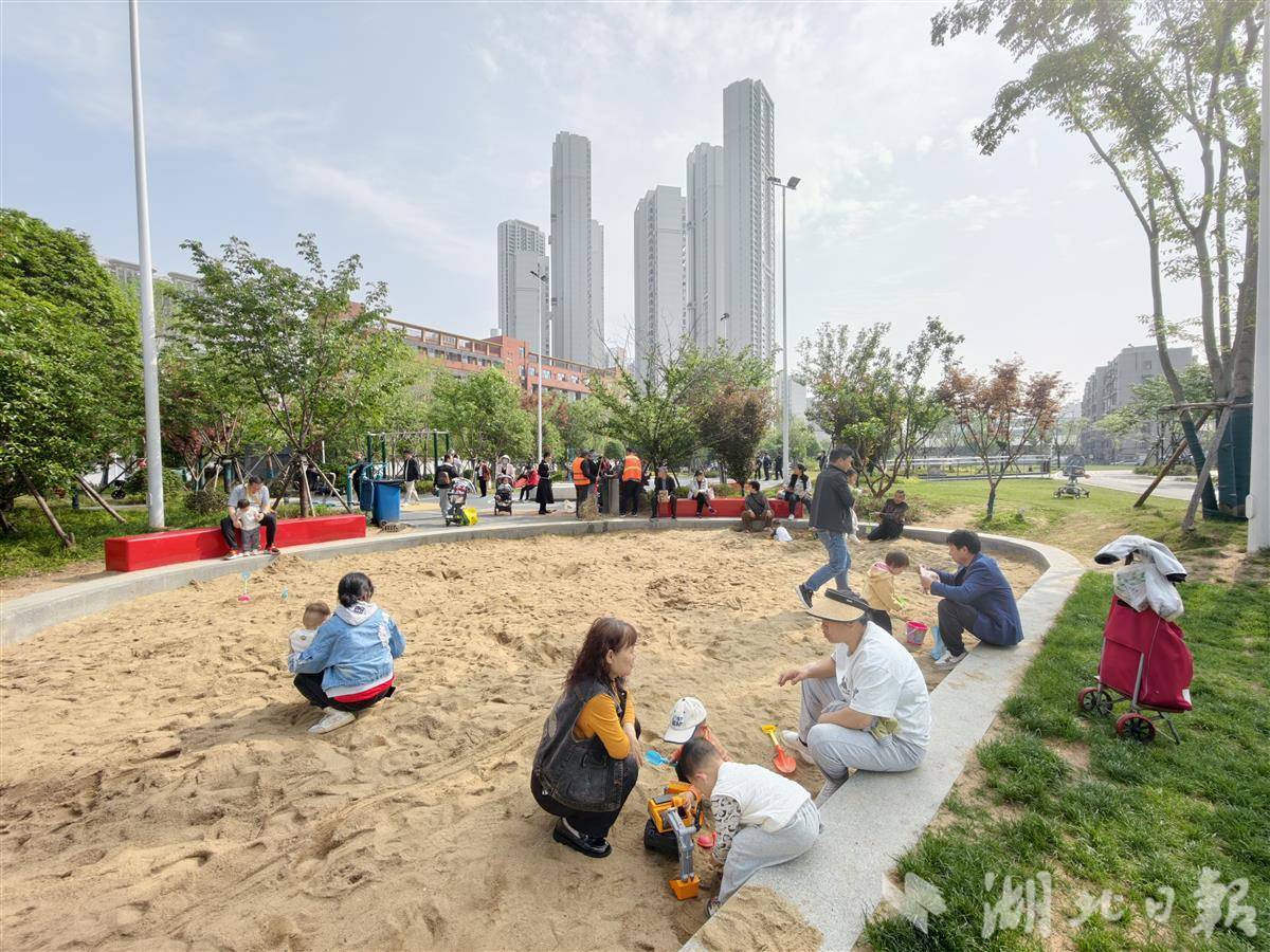 “沙坑、树荫都有,适老适儿设施特别全,离家又近,晴日里每天都带娃来!”市民陈群正带着孩子在沙坑玩耍,她告诉记者,公园成了周边家长的“遛娃圣地”。这片新游园紧邻多个大型社区与育英中学,辐射数万居民和师生,填补了片区大型休闲绿地的空白。