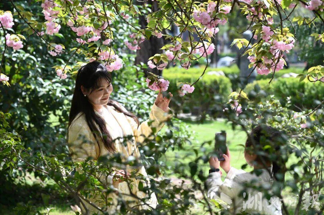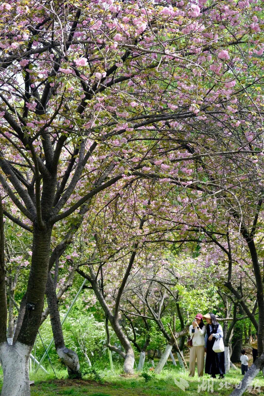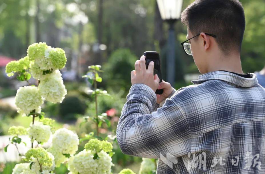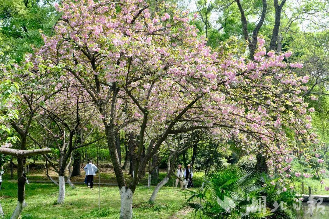 除了主打花卉,武汉植物园的春日花海早已遍地开花:桃园的菊花桃花型奇特,层层花瓣如菊花绽放,色彩鲜艳;黄木香垂坠如金色瀑布,香气袭人;绣球绣线菊繁密爆花,白茫茫一片如云朵落地;琼花洁白优雅,含笑暗香浮动,多种花卉共同交织出一幅五彩斑斓的暮春画卷。