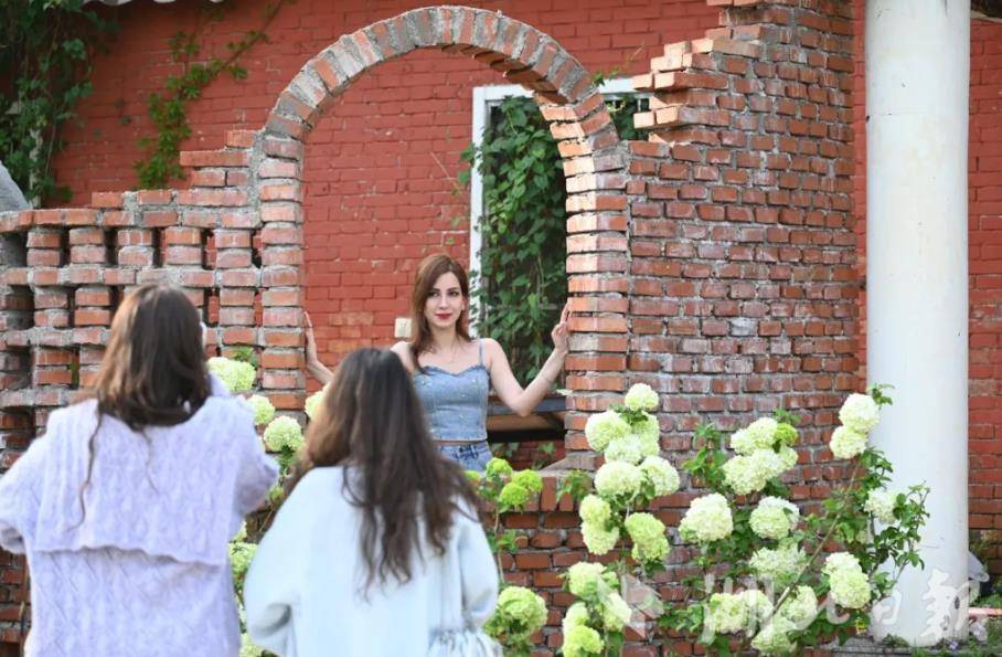 而新晋网红中华木绣球已经开爆,花境大道红房子前和绿野花田,团团雪球般的花球簇拥枝头,衬着复古赭红墙垣,随手一拍都是法式复古大片,成为园内新晋打卡顶流。