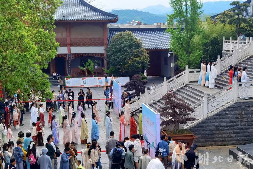 湖北日报客户端讯(通讯员余国斌、余超)2026年4月6日,宜昌市汉服文化协会联合夷陵区博物馆在夷陵楼举办宜昌第三届花朝文化节。